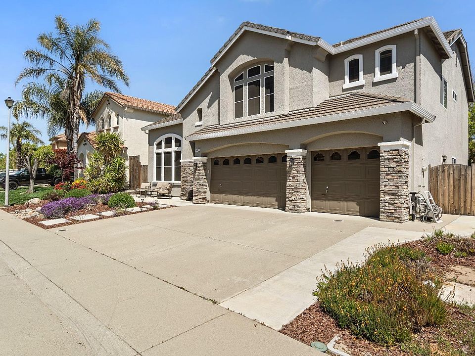 This beautiful five bedroom home has it all. One bedroom on the first floor with enough space for guests. There are three full bathrooms, a bonus room upstairs as is the laundry room and four more bedrooms, a separate family and a formal living dining room as you enter through the front door. If you like in-kitchen dining, there is plenty of space plus a dining bar. Newer installed Mannington waterproof/scratch-resistant white oak look flooring. The HVAC has been replaced, and so has the water heater. Large pool-sized backyard with a patio that has the best exposure in the valley, morning sun and shade in the afternoon. Check out the front patio too. This spacious home is located in one of the most desirable school districts. Located just a block from shopping, parks and easy access to Hwy 65. This home will go fast.