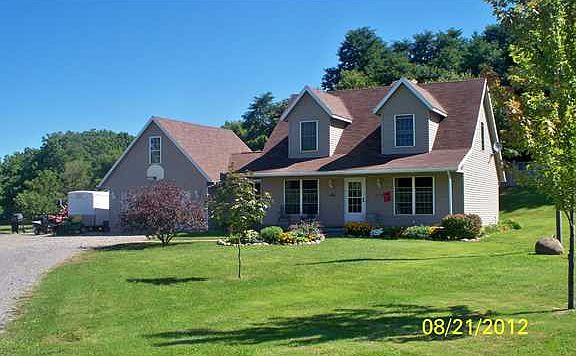 Less than 5 minutes to Conesus Lake boat launch. This well made 3 BR, 2.5 BA Cape Cod sits on a 5.28 park like setting! Trails, stream & a campsite to the back of the property along with many fruit trees & an above ground pool. Inside there is a large kitchen, formal dining room, laundry & master bedroom & bath on the 1st floor. On the 2nd floor there are 2 large bedrooms & a full bath. Nice open front porch, large deck in the back just off the dining room. Has a 2 car attached 2 story garage with storage above. All cable & electrial wires are buried. It also has an Artisian Well.