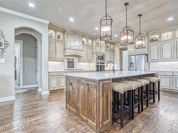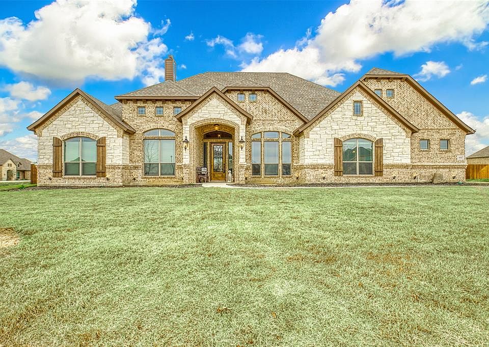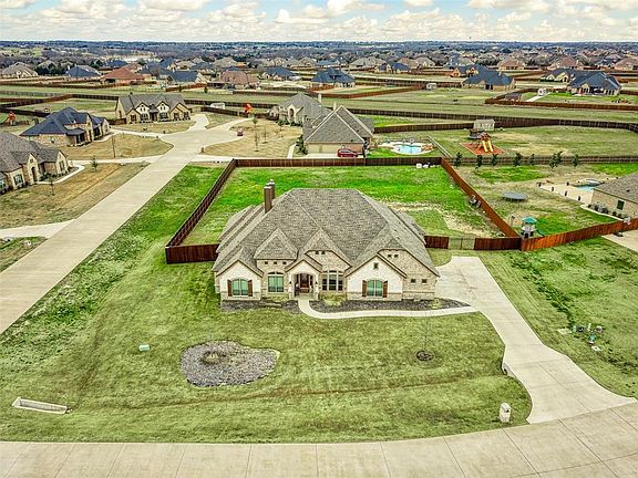 GORGEOUS!!! ALL ONE STORY! 12 foot ceilings, 8 inch Crown Molding, Leather Quartz counters, Grand Stone Fireplace, Outdoor Living area, Hand Scraped Hard Wood Floors, SS appliances, Double Oven, Built-in Buffet in Dining Room, and Coffered ceilings in Study. His and Her's closets with access to the laundry room. This home offers 4 bedrooms plus a Study 5th bedroom and 3.5 baths with an OVERSIZED 3 car garage on a little over 1 acre. New steel post perimeter fence. All built with top of the line products and quality, luxury finishes. Please see amenities document in Transdesk. This home has so much to offer and too much to list.