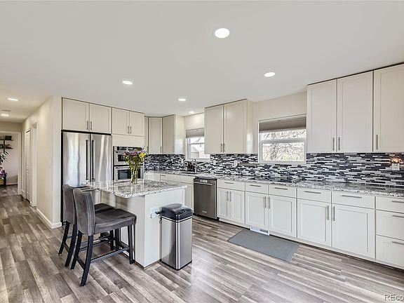 Warm and inviting ranch style home that backs to open area! This recently remodeled open concept home boasts 4 bedrooms and 3 bathrooms along with an incredible backyard complete with NEW custom TREX deck! The large kitchen is a cook’s dream with granite counters, island, high end stainless steel appliances, and popular white cabinetry. The large main floor primary suite is the perfect retreat after a long day. Plenty of upgrades throughout including new luxury plank laminate flooring, a stacked stone detail with electric wall fireplace in the family room, neutral interior paint, newer furnace and central air, and newly replaced roof! Don’t forget to take a look at the roomy 2 car garage as well as the oversized storage shed on the west side of the house. This home is a gem and perfect for families and empty nesters alike. Just minutes from Southwest Plaza, Trader Joes, Chuze Fitness, Clement Park, and all that Littleton has to offer. Welcome Home!