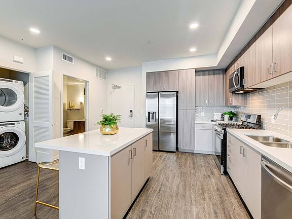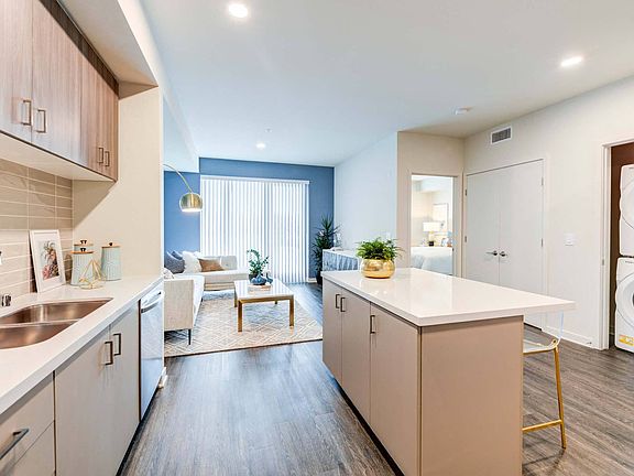- Exterior features: EV Charging Stations, Free Resident WIFI in Select Amenity Spaces, Game Room, Key Fob Access to Building & Apartment, Live/Work Combined Homes Available, Lounges Available for Booking Private Gatherings, On-Site Management, On-Site Premium Storage Units Available, Pet Spa for Semi-Private Grooming, Quartz Countertop & Decorative Tile Backsplash, Studio, One & Two-Bedroom Floor Plans, TV Lounge, Theater, Trash Room on Every Floor, Yoga Room with Mirror & Ballet Bar
