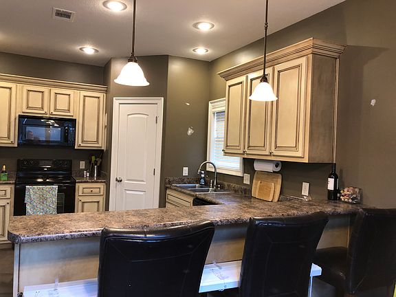 Text or call 870-408-1911 directly. Great 3 bedroom 2 bath home in Beaver Creek. Valley View School District. Home features split floor plan with vaulted ceilings in the living area. The kitchen is open to the living and dining area. Kitchen features solid surface counters, beautiful cabinety and a pantry. Master has a walk in closet. The master bath features jetted tub and separate shower. Neutral colors throughout this lovely home. Back yard is privacy fenced. The garage is oversized with great built in storage shelves which will stay with the home. In the process of painting the kitchen.