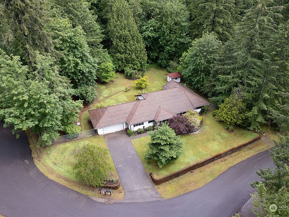 Discover the charm of this 3 bedroom,2 bathroom Rambler in highly coveted Alpine Hills. A location that offers excellent schools ranking near the top of the state. Perfectly situated on almost an acre,providing privacy & multiple areas for outdoor enjoyment. Delightfully remodeled kitchen offers bar seating open to the living spaces & an informal dining nook. All appliances including washer/dryer stay. Large office or flex room adjacent to the formal dining room. Oversized primary bedroom w/freestanding fireplace, walk-in closet, 5-piece bath & jetted tub. Bonus room is beautifully lined w/built-in shelving. RV parking,covered patio & fenced backyard.Close to the golf course & Black Lake. Close to the community playground & soccer fields.
