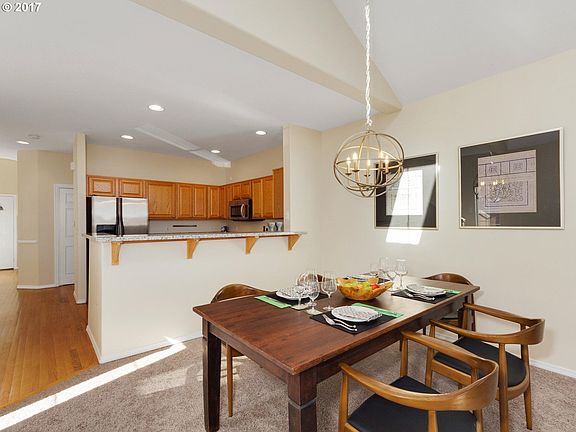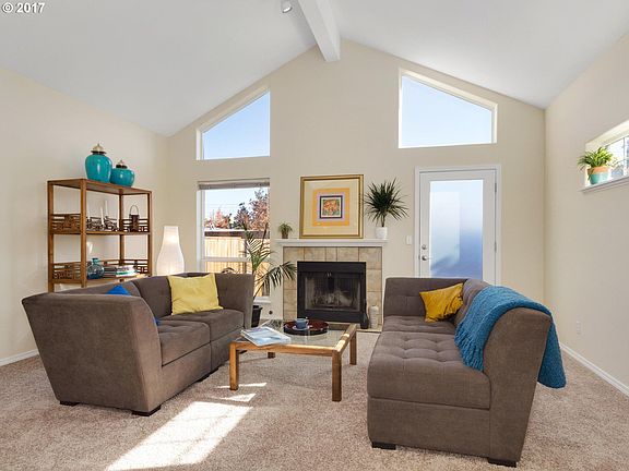Open & light-filled townhome in a convenient John's Landing location just blocks from the river w/easy access to dwntown & OHSU. Vaulted ceilings, skylights, hardwoods, new carpet, fresh int paint, granite, ss appliances & newer roof make this a smart value for comfortable carefree living. Master w/Mt Hood view; wood burning fp, private back yard w/newer fence. Situated on a corner w/windows on 3 sides for optimal natural light. No HOA!
