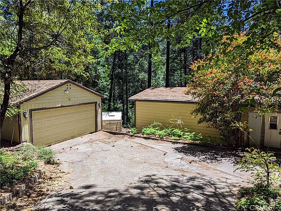 HAVE YOU BEEN LOOKING FOR TRANQUILTY WITH INCREDIBLE VIEWS OF THE FOREST IN A BEAUTIFUL PRIVATE NEIGHBORHOOD?! You found it!! Nestled in the majestic trees, with a seasonal creek below, is an amazing opportunity to live in a cute manufactured 2 bed/ 2 bath home with a Den! This home is situated on the end of a cul-de-sac on .59 Acre in the Paradise Pines Homeowners Association! Just down the driveway you will find a 2 Car Detached Garage, extra parking off the right side of the driveway, and a little Green House below. The original owner wanted to take advantage of the views and turned the front side of the home to face the Forest. You will notice the back door faces the driveway and is the easiest way to access the home. Once inside, the Den has many cabinets with desk area and also houses the washer/dryer (included in sale) which are behind closet doors. The spacious Family Room is just beyond and has an efficient pellet stove to heat the main living areas of the home. The beautiful display cabinet separates the Family/Living Room. There is also deck access through the sliding glass doors to the gorgeous forest views! The Kitchen opens up off the Family Room and is filled with tons of cabinet space, plenty of countertops, pantry, and Refrigerator is included. This kitchen will be sure to please any cook! The Dining Room has an incredible built-in buffet with display shelving, plenty of windows capture the forest views again and continue into the Living Room! There is a perfect area in the Living Room that was previously used for the large screen television. Down the hallway, you will find the Master Suite, Guest Bedroom & Guest Bathroom. The Master Suite has a surprisingly large bathroom with double vanity, linen closet, spacious soaking tub, separate walk-in shower & toilet. The Guest Room is adjoined with a Jack & Jill Bath which also has access from the hallway! Bathroom has tub/shower combo, vanity, & linen closet. You will love the peacefulness of this location! There is even a little pathway that leads to the bottom of the property where you can hear & see a seasonal little creek! This property is just waiting for you to call it HOME!
