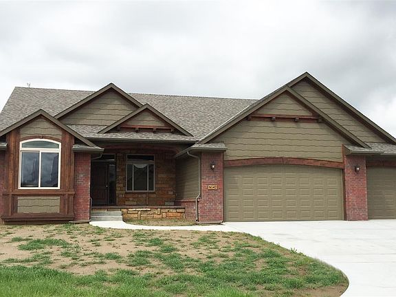 Home is located on a water lot! Has great room, large prep island with granite countertops, big walk-in pantry, living room has decorative gas fireplace, and dining overlooks covered deck. Master suite has bayed window area, double vanities, soaker tub, separate shower, and is adjacent to laundry area aw well as a decorative bench. Home is on a corner cul de sac lot across from the pool and club house and play ground area! MAIZE SCHOOLS!