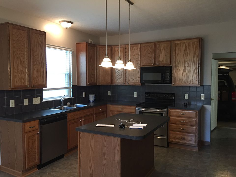 Large great room and kitchen. 3 bedrooms plus rec room upstairs. 2 car attached garage. Fenced yard and patio. Stainless appliances. Laundry hook ups.
