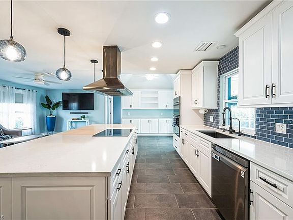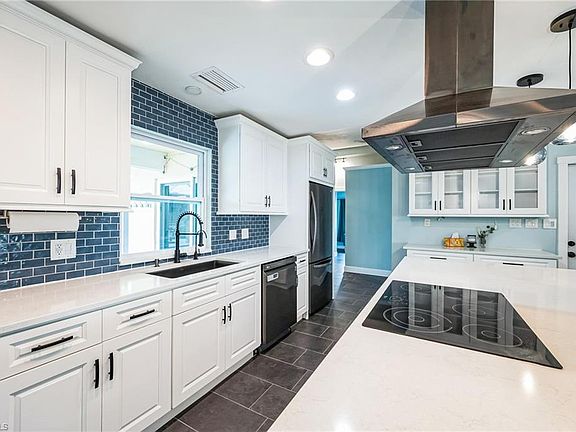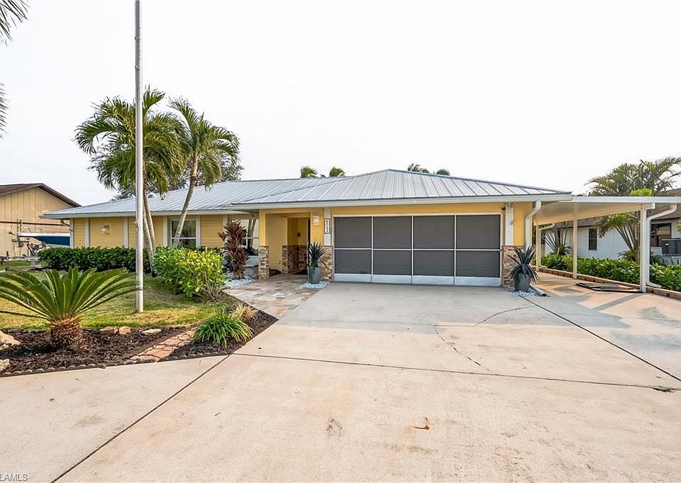 Welcome to this charming Fully upgraded 3 bedroom, plus bonus room (possible 4th bedroom), plus an office, and 2 1/2 bathroom home in the heart of Fort Myers, offering a light, bright, and open floor plan perfect for Florida living. With tile floors throughout, this home boasts a beautifully remodeled kitchen featuring sleek quartz slab countertops, stainless steel appliances with water osmosis to the sink and fridge, and a convenient pass-through window to the extended lanai and breakfast area, ideal for entertaining or enjoying casual meals. Step outside to a fully fenced-in backyard with your very own large enclosed pool and gazebo with a swing. Unwind and relax, or take in the beauty of your private tropical fruit garden accessed through the main sliding doors, or sliders from the master bedroom and office. Shed with additional covered storage area two concrete pads and a screened garage door. For water enthusiasts, the community boat ramp and dock provide easy access to Estero Bay and the Gulf. The property also offers boat parking, catering to those who love to explore the water. As part of a friendly and social community, you'll enjoy year-round gatherings, a fire pit, tennis courts, and a picnic area. Conveniently located near beaches, the airport, shopping, and dining, this home is a true Florida gem!