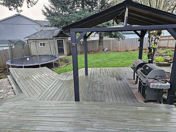 A beautiful 28-year old custom family home with many amenities. Large master bedroom with walk in closet. Upstairs laundry room saves time for all. Open area space in upstairs hall that opens to a tall entry way below. Fresh paint throughout the house, carpet in bedrooms, gas fireplace, and gorgeous Australian Cypress real hardwood floors will be refinished before you move in. Landscape/tool shop in back with enough room on the RV pad for boat and 6 cars. Approx. 1200 sq. ft. deck with fire pit, gazebo, hot tub, and trampoline. Yard sprinkler system in back and front. Fountain in back yard is plumbed, just needs a little TLC. Newer roof, hot water heater, 6ft fenced yard, furnace, and most faucets have been replaced. New utility sink and hot water faucet in garage. Move in ready as early as May 1st.