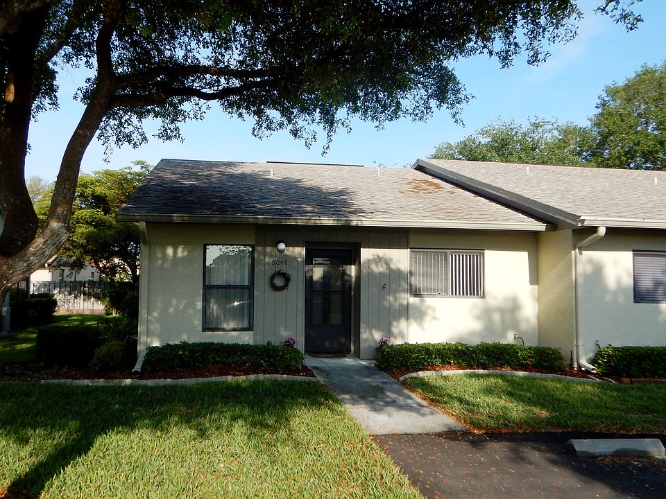 Exceptional 2BR/2bath end unit villa is freshly painted and ready to move in. Beautiful laminate flooring. You have your office separate from the living area for privacy. New AC in 2015. Bright and cheery unit is great to come home to. The spacious kitchen has room to eat in or enjoy the separate dining area. The large master suite includes a ceiling fan, large walk in closet, beautiful laminate flooring and a private bath. Your guests will enjoy their own room with private bath. Laundry room has plenty of room for some extra storage. Enjoy the newly renovated community pool where friends gather, or spend time walking the grounds. Call today to schedule your private showing.
