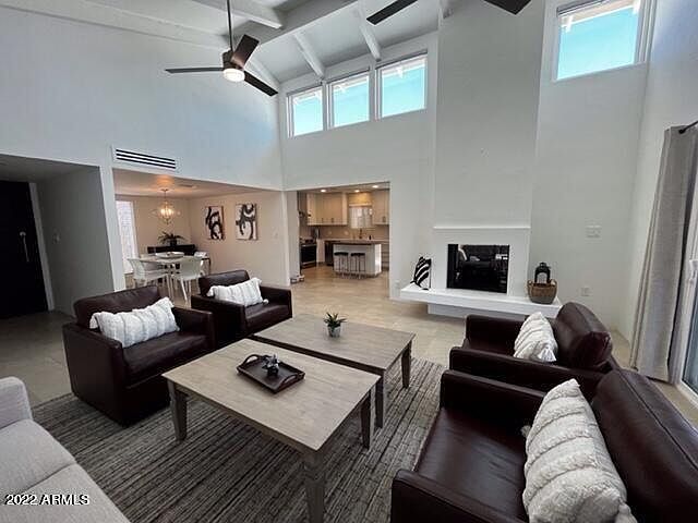 Beautifully upgraded single family home located in the private gated community of Briarwood, located in Scottsdale, AZ. This home offers 3 bedrooms, 2 bathrooms, and a 2,019 SQFT open concept floor plan offering a large inviting great room with vaulted ceilings and modern fireplace. The upgraded kitchen features tall shaker cabinetry, quartz countertops, stainless steel appliances, induction cooking, island, and plenty of storage space. Additional details include gorgeous large modern tile flooring throughout the home, updated electrical, new LG ThinQ washer/dryer, new interior doors & hardware, modern lighting/plumbing fixtures, new window treatments, and a large master retreat with walk-in closet, dual sinks, and step-in shower. Lastly, the home features new tankless water heater, water Lastly, the home features new tankless water heater, watersoftener, 2-car garage, large inviting private backyard with beautiful pebble-tech pool [new heater equipment], new irrigation box/valves, upgrade landscaping w/ pavers & turf, and increased privacy with raised backwalls. Briarwood community is located in the highly desirable McCormick ranch district of Scottsdale which is close to shopping, dining, and entertainment. **MANY ADVANTAGES TO LEASING LAND: thousands/year less in taxes and owning a home in this premiere location for hundreds of thousands less than surround neighborhoods. Perfect vacation home and winter visitors home. Live the luxurious Scottsdale lifestyle for so much less!