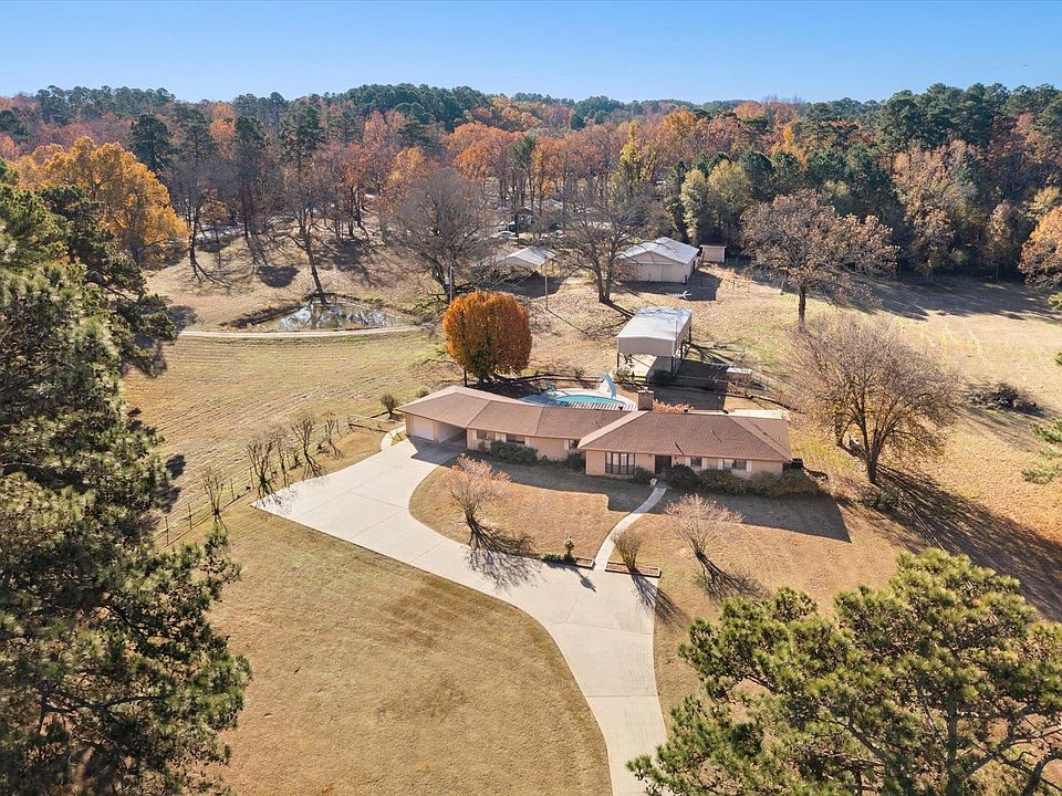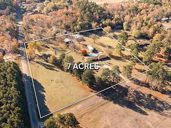 Set on 7 beautiful acres in Hallsville ISD, this Longview property offers the freedom and charm of true country living with room for horses and cattle. Pipe fencing with cross-fencing, horse pens, and a well-appointed barn with four stalls, tack room, feed room, and tool shed make it ideal for livestock enthusiasts. Enjoy peaceful days by the stocked pond, relaxing afternoons by the swimming pool, and wide-open views in every direction. The home features three bedrooms, two baths, and three living areas—perfect for everyday living or gathering with family and friends. A covered RV pad with electricity adds extra convenience. Located minutes from central Longview and Hallsville, this property blends rural lifestyle, functionality, and convenience in one exceptional setting. Seller reserves mineral rights.