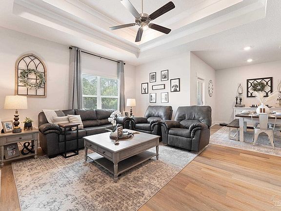 Tell you agent to check the agent notes $$$! Eligible for USDA financing! This is your opportunity to get into a home with little money out of your pocket! **STILL UNDER BUILDERS WARRANTY!!**Tired of staring at the back of your neighbors house? Welcome to Kaheeley Ridge, located in Beulah's BRAND NEW neighborhood, Kaheeley Ridge! Step into The Rhett, a perfect 4-bedroom, 2-bathroom, finished and painted 2-car garage home that exudes relaxation. IT IS BASICALLY A BRAND NEW HOME! The sellers have had a gorgeous fence with double gates installed out back that incorporates a view of the pond behind the property, as well as Gutters and new flooring to match in the 4th bedroom/office!! The side yard is wide enough to back a vehicle or trailer in with plenty of flat ground to enjoy! This home comes move in ready and better than a new build! As you enter, marvel at the open layout floorplan with a magnificent island in the kitchen, where culinary magic happens while you oversee the dining and living room area. Inside, be greeted by elegant trey ceilings, stunning granite countertops in the kitchen and bathrooms, and luxurious vinyl flooring throughout the home, complemented by cozy Friese carpet in the bedrooms. But that's not all – this home comes equipped with a cutting-edge Smart Home Technology package. Experience the convenience of a KwikSet keyless entry, the security of a Skybell doorbell, and the charm of automated front porch lighting. Discover the power of an Echo Dot device and a Quolsys touch panel that lets you control your lighting, thermostat, front door, and so much more. Placed just minutes away from Interstate I10, adventure awaits just around the corner. A mere five-minute ride will transport you to shopping, delectable restaurants, thrilling entertainment, and the mesmerizing beauty of Pensacola beach. Get ready to immerse yourself in the laid-back charm of Kaheeley Ridge and make The Rhett your perfect slice of paradise.