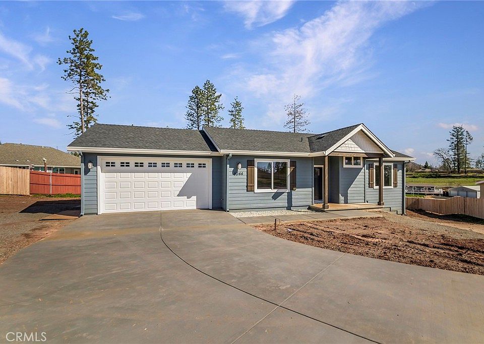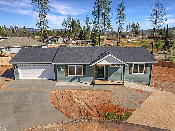Did someone say CURB APPEAL? This brand new 2024 Trilogy Construction custom home is stunning! With 50 plus years of building on the Ridge, attention to detail and quality of construction is assured. Lap siding, wood accents, covered porch, and custom color scheme blend perfectly together to create an amazing first impression when pulling up to the home. The front door leads the way to the main living space. Lined with LVP flooring highlighted by natural light, the functional floor plan has a clear definition of space. Walking through the dining area, the sliding glass door and kitchen window provide an incredible view of the rolling hills that line the Feather River canyon. Alder cabinetry, Quartz counter tops, stainless steel sink and appliances blend together to create a warm feel that elevates the functional kitchen design. Heading back to the master and guest bedrooms the hallway is lined with a coat closet, guest bath, and indoor laundry room. The spacious master is the perfect place to retreat! The master bath has been finished with an oversized vanity, quartz counter, and an absolutely stunning custom walk-in tile shower. While entertaining guests in your home there is no shortage of places gather. The outdoor living space begins with composite deck which leads to a concrete patio. Whether you are enjoying the morning sun or evening shade, the incredible view from the deck will certainly be a conversation starter. Just below the deck the private patio will be the perfect place to enjoy cool summer nights in the 3/4 fenced yard. Attached two car garage, central heat and air, whole house fan, attention to detail, and quality construction make this affordable home an absolute must see.