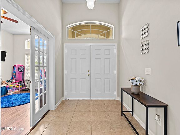 This stunning single-story home offers impressive 12 FT Ceilings, 5 bedrooms, 3 bathrooms, and over 3100 square feet of living space! As you step inside, you'll be welcomed by soaring ceilings and a well-designed floor plan. The foyer flows seamlessly into a formal living and dining area, leading to the spacious kitchen and additional living space. The expansive primary bedroom features dual vanities, his and her closets with desirable built-ins. Additionally, a versatile flex room with sliders opens to the oversized fenced backyard, providing ample space for outdoor entertainment and a potential pool. Bartram Springs is a coveted neighborhood known for its desirable amenities, including a serene pool with a water slide, a children's pool, soccer fields, and much more offering a resort-like atmosphere for residents to enjoy!