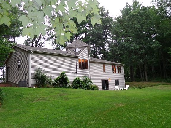 Escape to this 3 bedroom, 2.5 bath home on 26 acres just East of Plover. Main floor features a large kitchen with lots of storage, stainless appliances including a gas range, a large pantry and a dining nook as well as a large dining room and living room with vaulted ceilings and wood floors. There is also a stunning master bedroom with his and her walk in closets, vaulted ceilings, dual vanities and a great walk in shower.The lower level features a huge walk out family room with a wet bar, two large bedrooms, a walk in cedar closet and separate laundry room. Home also features a large 2 car attached garage, nice patio and a detached 48x45 steel building with a concrete floor and separate 200 amp service. The 26 acres offers seclusion, space to play and tons of wildlife!