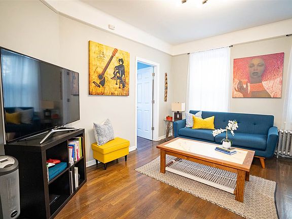 Welcome home to this recently renovated 2 bedroom, 1 bath condo located on the most desirable street in West new York. Featuring a spacious eat-in kitchen, nice sized bathroom with storage, hardwood floors and plenty of closet space. Washer/dryer facilities are onsite in the building's basement. Low-maintenance living with all conveniences at your fingertips. Easy access to NJ Transit outside the building entrance. With buses running 24hrs and a short distance to NYC, it's a commuters dream!