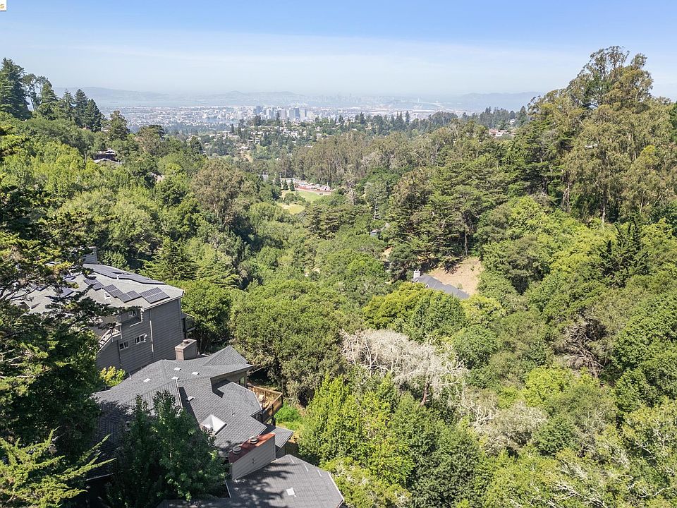 This striking contemporary view home nestled in the verdant hillside of Piedmont Pines gives a modern vibe in a serene setting. Enter into the dramatic foyer leading to stunning bay and city views from the living room with fireplace and abundant windows. Enjoy outdoor dining on the view deck accessed from the living and dining rooms. While cooking in style with granite counters and stainless steel appliances, the kitchen/family room combo offers a cozy space to relax with another fireplace. Need your own home office? The upstairs bedroom is the perfect space. The lower level boasts a huge primary bedroom with its own private deck and a luxurious en suite bathroom with a soaking tub overlooking the views. Two additional generously sized bedrooms and full bath, plus a separate laundry room are also on this level. Located just a few minutes from Montclair Village, featuring cafes, restaurants, boutiques, Sunday Farmer’s Market, library and more. Also nearby are outstanding bike routes and hiking trails, plus convenient freeway access via scenic Hwy 13. A truly special home!