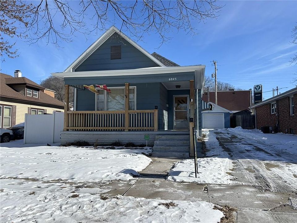 Charming 3-Bedroom Bungalow with Endless Potential. Welcome guests from the inviting covered front porch into a welcoming entry area, complete with space for a coat tree and table to set down bags and keys. Timeless wood floors connect the entryway to the spacious living and dining rooms, offering warmth and character throughout. The eat-in kitchen features ample cabinetry and generous counter space—perfect for preparing and baking holiday meals and desserts. This well-maintained 3-bedroom, 1.5-bath bungalow is move-in ready and just waiting for your personal cosmetic touches. Downstairs, the unfinished lower level offers abundant space for storage, a craft room, or future expansion to suit your needs. Step outside to the covered patio, a peaceful spot to relax and enjoy the privacy of the fenced backyard. The oversized 1-car detached garage not only shelters your vehicle but also provides valuable workshop space for hobbies and projects. To top it off, the new roofs on both the house and garage (2024) ensure lasting peace of mind for years to come. Don’t miss this charming home—full of potential and ready for you to make it your own!