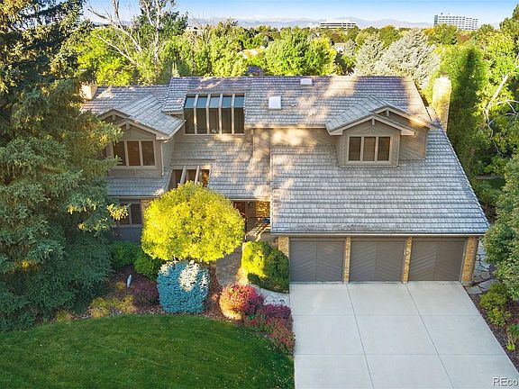 Situated on the highest lot in the prestigious neighborhood of Huntington Acres, this well appreciated home offers vast open rooms, an easy flowing floor plan, and large windows with breathtaking mountain views.Enjoy the private backyard with distance from the neighbors providing the perfect serenity while still offering the convenience to the local grocery, restaurants & shopping- all minutes away at the intersection of Yosemite and Belleview. Nearby Tommy Davis and Silo Parks offer open space, miles of trails for nature exploration, and a playground! Admire the expansive and open view of the Front Range from the eat in kitchen where you will delight in having new double ovens and range! Countertop space for food preparation and abundant cabinet space for storing dishes as well as all of those practical items that make the wheels of a kitchen turn. The open family room to the kitchen allows everyone to remain part of the conversation-this floor plan is perfect for entertaining.Enjoy the warm summer evenings on the elevated deck just off of the family room-near to the kitchen, it provides the perfect place for the grill.Completing the first floor is a laundry room with a utility sink and abundant storage; a designer half bath; dining room that is light and airy; a living room with a fireplace; and a cozy study with garden views. Three bedrooms upstairs with full bath, plus an impressive primary bedroom suite with both mountain and front yard garden views.The walk out, full, basement is perfect offering a bedroom, bath, flex space and a built-in wet bar.Imagine movie and game nights- ample room for the pool table! And lots of storage closets. A brand-new heating & cooling system installed in 2023 and an updated sewer system! Landscape lighting shows off the mature trees and professional landscaping compliments this luxurious home.Here is an opportunity to enjoy living in a desirable neighborhood where turnover is uncommon.This is a hidden gem in Greenwood Village.