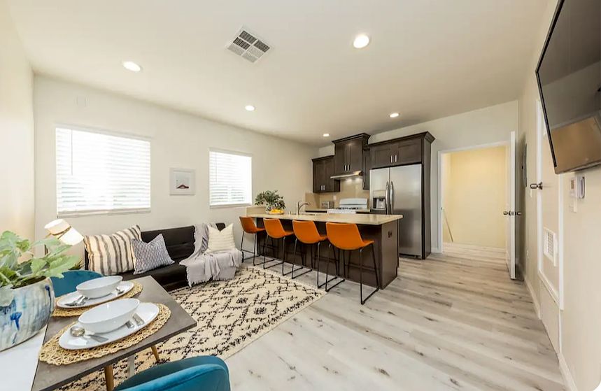 Modern Apartment/ADU for Rent First Floor: Includes a washer, dryer, closet, and a small room with a desk. Second Floor: Features 2 bedrooms, 1.5 bathrooms, and a full kitchen. Location: Central Huntington Beach (corner of Warner and Springdale). parking: one spot on driveway, and free parking on street. Fully Furnished Rent: $2,800/month. Details: New and a modern design. Flexible