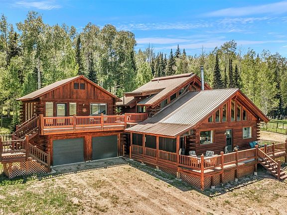 This enchanting 3 bedroom, 3 bathroom home with 2-car garage sits on 35+ acres at the Ranches at Steamboat Lake. The property includes a large barn with four bays including a shop area with concrete floors, water and electricity and it is fenced and cross fenced so it could accommodate horses or even a small agricultural operation. The fully furnished home features spectacular views from the wrap around deck of Steamboat Lake, Hahn's Peak and the Zirkel Wilderness area. The open floor plan boasts vaulted ceilings, a living room with cozy gas fireplace, a dining area with views, and an updated kitchen with a breakfast bar. The primary bedroom and bathroom are located on the main level and there is an additional bunk room, bathroom and lofted living area on the upper level. The third bedroom with ensuite bathroom is located above the garage. The Ranches are Steamboat Lake include private USFS access for amazing snowmobiling, there are miles of groomed cross-country ski trails in the winter and in the summer the hiking, horseback riding, and biking are incredible. The home is just moments from Steamboat Lake State Park, only 2 miles from the Marina, and it is only 28 miles to downtown Steamboat Springs. This lake property is not to be missed!