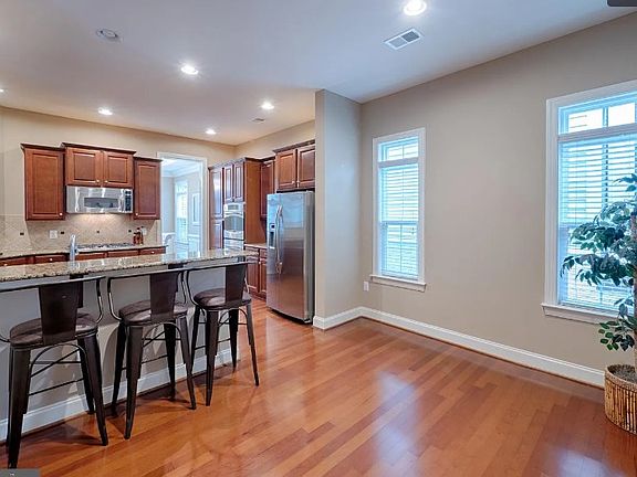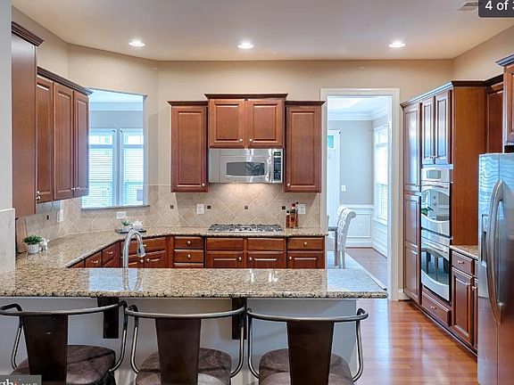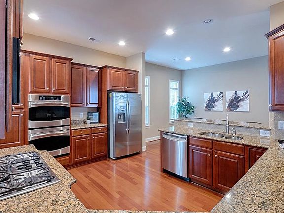Polished single family home in Kingstowne! With an easy flowing floor plan, this Richmond American home stuns with elegant stone front, gleaming cherry hardwood floors, fresh paint, new carpet in bedrooms, recessed lighting and delicate crown moulding. You'll be greeted by a two story foyer leading to a central gourmet kitchen which features a breakfast room, granite counters, stainless steel cooktop and double oven as well as 42- Aristokraft cabinets. Formal dining room boasts tray ceiling, opens to living room lined with transom windows and access to deck. Upper level features a master bedroom suite with walk in closet, bath donning ceramic tiled shower with glass doors, dual sinks and separate soaking tub. Across from the master rests ample second bedroom with adjoining private full bath plus laundry room. Bedrooms are conveniently separated by a lounge with versatile space - great for reading or movies, snuggling in front of the fireplace, a homework station for the kids or additional play space. Second upper level boasts two more bedrooms and full bath. Kingstowne residents enjoy walking trails, a beautiful lake, two outdoor pools, state of the art fitness centers and 1200 acres of green space, not to mention a convenient town center is walking or biking distance. 12 month lease Utilities (water, electricity, gas) are the tenants responsibility.