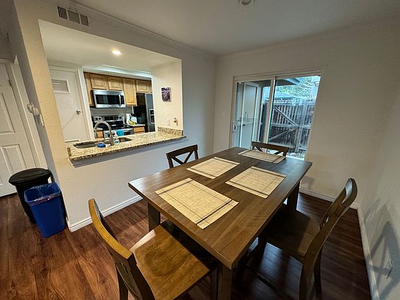 This is a beautiful community in a great location with only one housemate. There is a community pool and well-kept grounds for walking. The Master bedroom (2nd floor) is for rent. This comes fully furnished with a bed, side tables, TV & stand, large closet with direct access to the bathroom. There is a second bathroom downstairs off of the living room. Great open concept between the kitchen, dining area, and living area. Additionally, there is a front and back patio area. 1 parking space and a built-in washer/dryer.