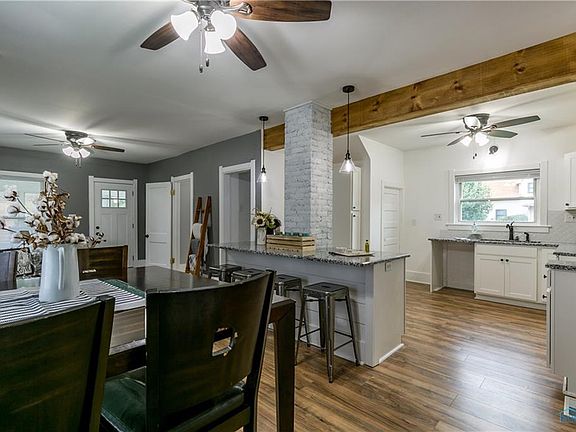 Wow! Newly renovated on over ¾ acre lot w/large outbuilding! Bright kitchen offers granite, deep drawers & soft-close cabinets. Exposed brick/glass doorknobs/new flooring throughout. All new baths w/custom tilework. Basement glass block. Updated electrical. Enclosed front porch. Garage/workshop offers new 8x9 ft doors/walk-up attic & office space--perfect for business. $1,500 appliance allowance.