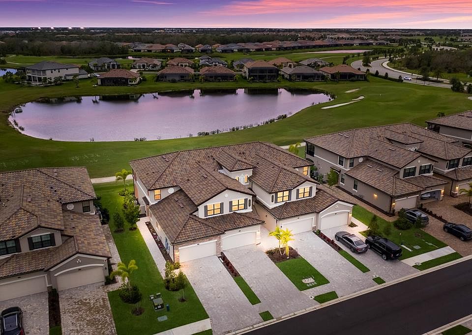 Who doesn't want to live in paradise on a permanent vacation??? This ground floor, 3-bedroom coach home has everything you need to live the dream. Full access to all resort amenities including but not limited to a Full Golf Membership, Poolside Tikki Bar, Resort Zero-Entry Pool, and Full-Access Salon and Spa (see below for full list). The coach home itself is stocked FULL OF UPGRADES including: Water View and View of Golf Course, Crown molding and Tray ceilings, Privacy glass paneled front door. Kitchen has: Custom pulls-outs for lower cabinets, Custom pantry shelving with lazy susan shelving, Stainless Appliances, Gas Range, Granite Countertops, Oversized island, Single basin sink, and Custom glass subway tile backsplash. Upgraded lighting fixtures and fans throughout. Laminate flooring in all of the bedrooms (no carpets!). Master Bedroom includes: Blackout honeycomb shades in master with automated slider shade, Custom walk-in closets, Ensuite bath with dual vanities and step-In shower w/seamless glass. Smarthome features include Ring doorbell, Honeywell Thermostat, Schlage Coded Keypad for front door. Granite Countertops & Shaker Cabinets throughout. Garage has epoxy flooring and mounted shelving for storage. *****COMMUNITY INCLUDES: 36-Hole Arnold Palmer designed golf course, Tiki Bar Grand clubhouse with restaurant (currently under construction), Resort style zero entry swimming pool with lap lanes and heated spa, Smaller satellite pools throughout community, 8 lighted Har-Tru tennis courts + 1 tennis ball machine court with automatic ball retrieval system, 4 pickleball courts, 2 Har-Tru bocce courts, 24-Hour State-of-the-art fitness center, Onsite Fitness Director and TPI Certified Personal Trainer, Variety of group fitness classes to choose from, Full-service spa, Professionally managed homeowners association, Fully maintained lawns, Gated community with 24-hour security. **LOCATION: Centrally located. A+ schools, LECOM, & Manatee Tech East Campus. Minutes to downtown Lakewood Ranch, Waterside downtown dining & recreation, Sarasota nightlife, Sarasota International Airport, the top-rated beaches in the country, UTC Shopping. Room Feature: Linen Closet In Bath (Primary Bedroom).