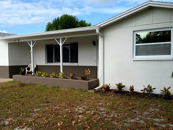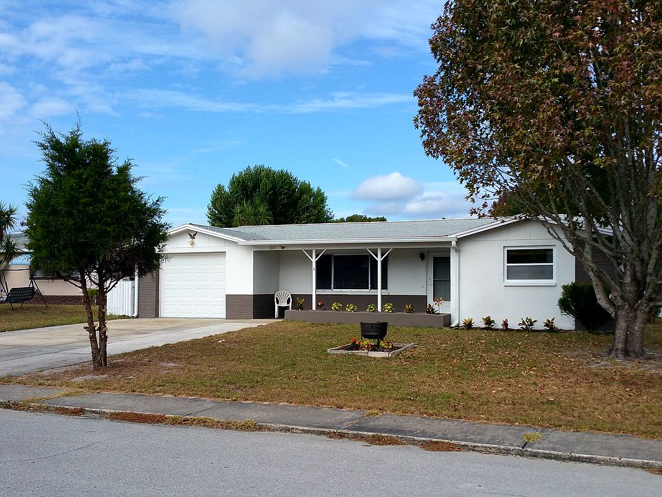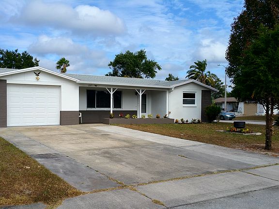 The home has brand new laminate wood floorings throughout the whole house, new tile in the kitchen and the bathrooms.Updated Kitchen and bathrooms. Newer windows in front and rear of home which has a large Florida room (Family room). With nearly 1600 sq. ft. This is a solidly built concrete block home in a location that is convenient to everything. This home is cozy and comfortable. at lot of open space. The screen in porch in the back of the house will give you the Florida living you are looking for. The home sits on a corner lot in a quiet family neighborhood near Gulf High, which means no hauling your teen back and forth from band and sports practices. They can be home in five minutes by bike. This house is MOVE IN READY! NO HOA, NO FLOOD AREA!