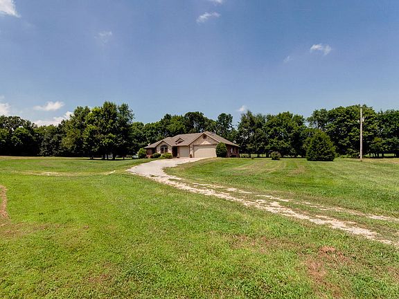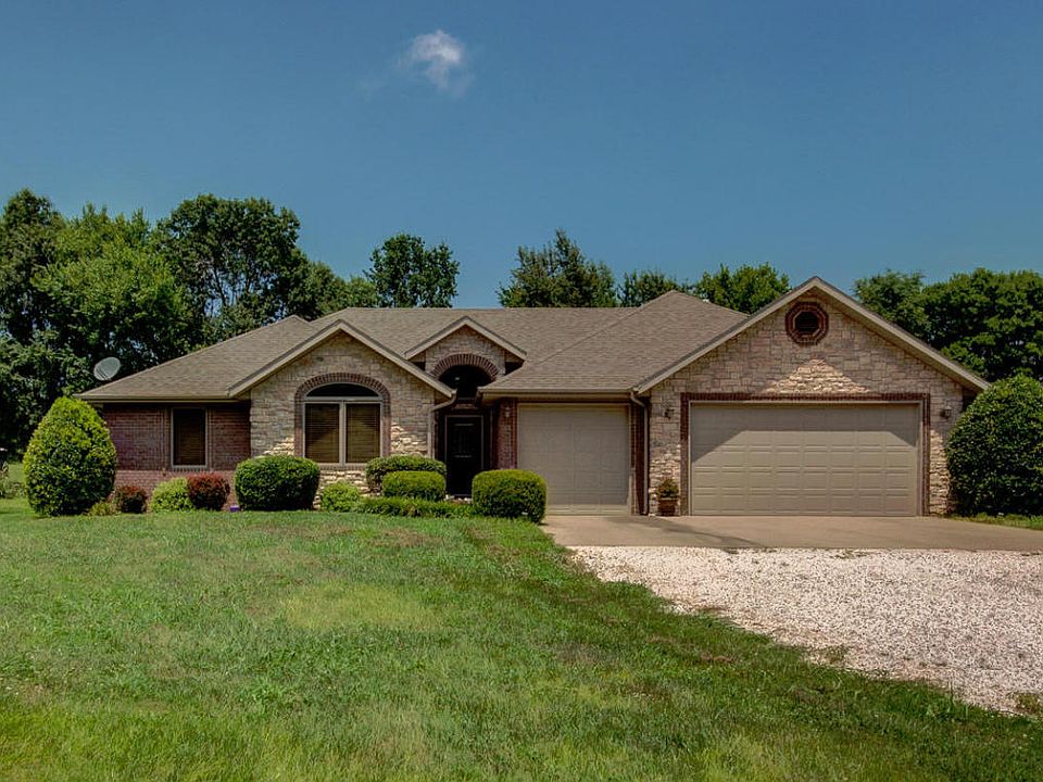 This 19 acre farm is conveniently located 6 miles E of Springfield and 1 mile N of Hwy 60. It has been used for keeping several horses and includes a barn, heated water tank set up, hay pen, fenced and divided pasture, hay fields and wild life areas. The lovely brick/stone ranch was custom built in 2005 and includes a 3 car garage, living room with gas FP and crown molding, eat-in kitchen with large island, large laundry room, 3 bedrooms including the master suite with jetted tub, walk-in shower, double vanities, and walk-in closet. It is wired for connection to generator power and includes a 12000 watt generator and connecting cables. There is also a water softener and private gate at the entrance. Lovely setting.