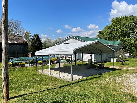 Great one level living, huge yard, 2 carports 20x19 & 20x21, 40x29 barn, beautiful setting, above ground pool lots of landscaping, small tank under deck for gas fireplace is unhooked. Used to have a 3rd bedroom Sellers removed wall to make living room larger. Selling as an estate as-is. There is a 25 ft permanent easement & right of way for ingress & egress. All info taken from court house records Buyer or buyers agent to verify.