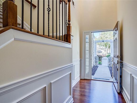 6047- Mayfield Way - Welcome Home! This cozy end-unit townhome, located in an Ashton Woods Townhome Community, includes three bedrooms, two and a half baths and a two-car garage. Freshly painted throughout along with well-maintained hardwood floors on the main level, a lovely two-story foyer leads into an attractive, open concept living/dining/kitchen space. Whether entertaining guests or enjoying a meal with family or friends, the dining area, sizable living room and gas fireplace are the ideal place for getting together. You'll love the patio and sitting area that are perfect for outdoor gatherings. The second level is highlighted by a substantial primary suite containing an equally impressive bath featuring dual sinks, a comfortable tub and a vast walk-in closet. Two additional, ample bedrooms and another full bath are also located on the second level along with a homey loft area that can easily be used as a home office, workout space, etc. Guest parking is conveniently located directly in front of this townhome as well. Don't miss the beautiful amenities that include a community pool, tennis courts, clubhouse, fitness center and the historical 12-acre Riverline Park that is accented by a walking trail, playground, and lighted fields in this charming Oakdale Bluffs Community. Location cannot be beat, just a short drive to both the battery and Smyrna Village Market.
