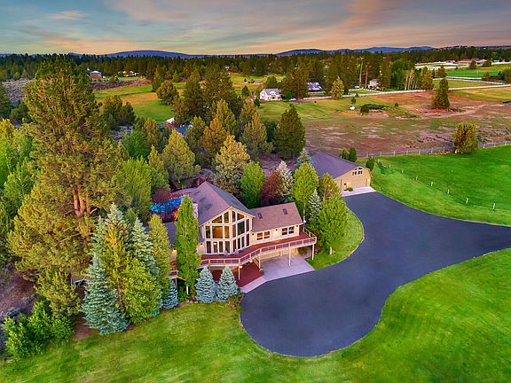 Seller credit of $30,000 with acceptable offer! This estate offers a stunning home with Cascade Mountain views, a refinished pool, a shop with guest quarters & RV parking, a barn, and irrigation. Step into the lower level family room, bonus room & full bath. Upstairs, the great room features an impressive stone fireplace, vaulted ceiling, and floor-to-ceiling windows showcasing panoramic views. The kitchen with island seating and a sunlit dining area opens to the back deck. The main floor also includes two en suite bedrooms, two additional bedrooms, and laundry. The primary suite upstairs boasts remarkable views & a private deck overlooking the pool. The extensive shop with a guest house has a separate bay with RV hookups, addl. shop space or parking, kitchenette, 2 bedrooms, full bath & office/flex space. Horses and goats thrive in the barn and pastures. The pool, surrounded by extensive pavers, is the focal point of the backyard, ideal for lounging and entertaining