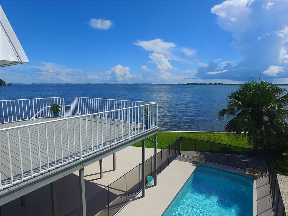 Direct Riverfront! Walls of sliding glass doors open to private balconies & patios exposing breathtaking panoramic water views. Inside you'll discover a renovated kitchen w/quartz counters & SS appls. Master suites on 2 floors for family privacy w/luxurious updated baths. Arched doorways & thoughtful touches throughout all on an extraordinary lot w/canal & river frontage, pvt pool & dock