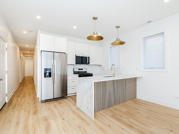 BRAND NEW CONSTRUCTION: Penthouse unit; spacious, bright, and clean, with soundproofing throughout, make this brand-new condo in Chicago's booming Woodlawn neighborhood your new home, an oasis from the bustle of the city! Unit: Available Now. 3 bedrooms, 2 bathrooms with master suite In-unit laundry Sound-proofing throughout for additional privacy Open-concept kitchen and living room, allowing you to maximize your space and ideal for hosting others Well-equipped kitchen, with stainless steel appliances and dishwasher Private deck space 1 assigned parking space Area: 3-minute walk from the Cottage Grove Green Line stop and the 4 bus - make your commute to the University of Chicago or the Loop easy! 7-minute walk or 2-minute drive to Jewel-Osco 9-minute walk or 3-minute drive from Aldi Get to the University of Chicago in less than 10 minutes on public transit, or in less than 20 minutes by walking! Less than a block away from neighborhood restaurants, shops, and the library. Parking Pad space included