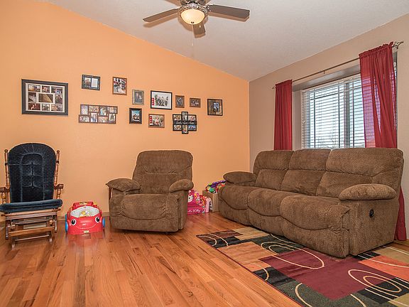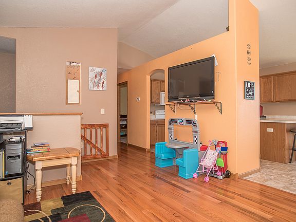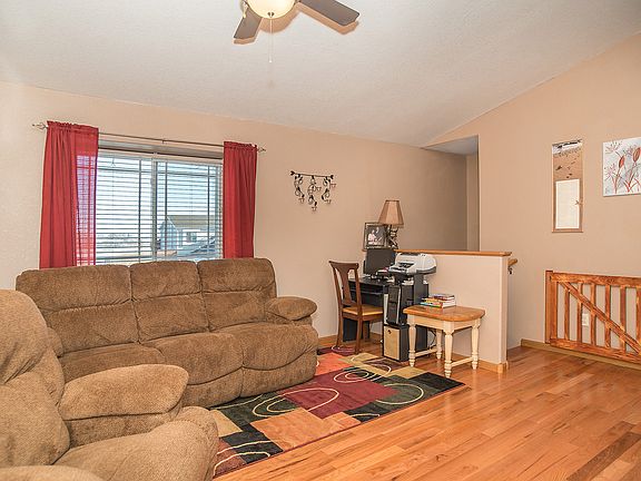 You are going to love this one! This 4 bed, 2 bath, 2 car garage home in Rapid Valley is a stunner! From the beautiful hardwood flooring, to the modern paint scheme and vaulted ceilings, this is move-in ready! The living room features gorgeous hardwood flooring and leads into the dine-in kitchen, complete with a breakfast bar. A large archway leads you to and from the kitchen area through the hallway to the master bed/bath and second bedroom. Both upstairs bedrooms have walk-in closets! Have company coming over? Put them up in the spacious downstairs area, which features two more bedrooms (4th bedroom has no closet) and another bathroom, as well as a beautiful family room which is sure to impress. The large back yard is fully fenced and the lawn is irrigated with an underground sprinkler system. There is plenty of garage space for storage or projects. Welcome to your new home!