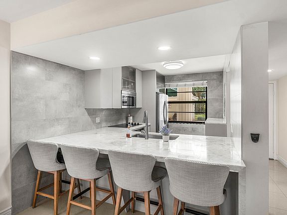 The best unit in WhiteHall is ready for it's next owner! Beautifully renovated 1st floor unit, with Lake Views. This condo features all impact windows, a newer AC unit, stunning porcelain tile throughout, a massive storage/ laundry room featuring upgraded samsung washer/dryer. The kitchen features custom made cabinetry, extended QUARTZITE countertops, high end stainless steel appliances. Updated electric and plumbing. Perfectly located in Central Boca less than 5 minutes away from Major Shopping Centers, 10-15 minutes away from Mizner Park & Boca's Beaches. Amazing community in the heart of Boca, easy first floor access. The community features two pools & club rooms! Come take a look today!