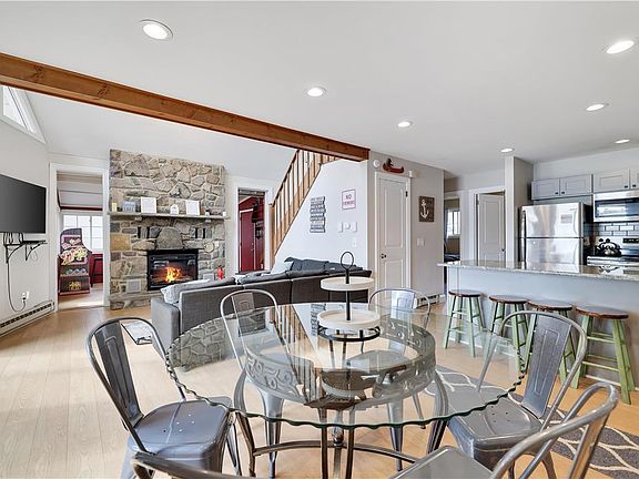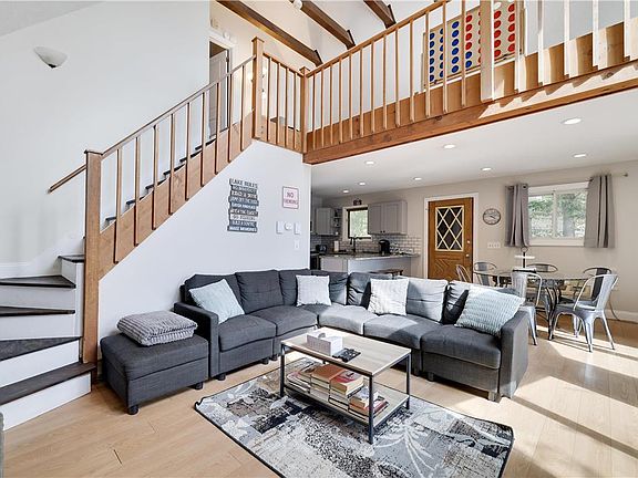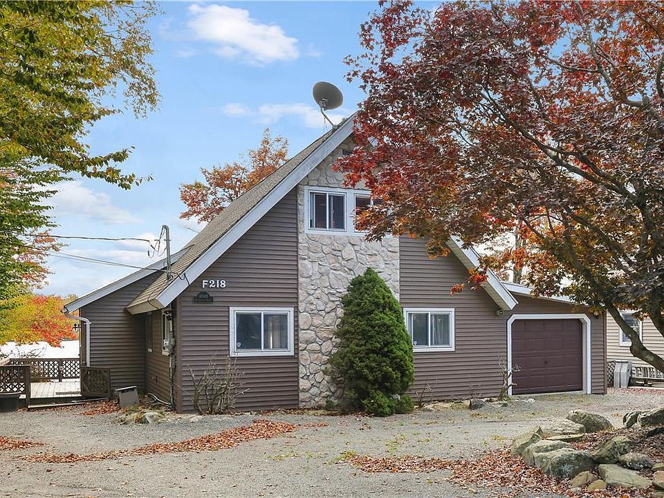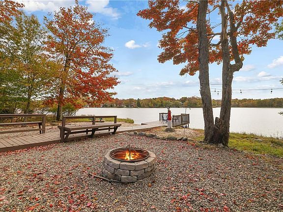 Come Today to See This Stunning, Short-Term-Rental-Friendly Lakefront Chalet in Amenity Filled Neighborhood! Offered fully-furnished with all decor and strong rental history, this picture-perfect Pocono chalet features amazing outdoor spaces including oversize deck w hot tub and walkway to private sandy beach area & dock at the water's edge. Just a short drive to Kalahari Waterpark and Convention Center, Camelback Mountain Resort, Tobyhanna State Park and with easy access to routes 380/80, this is a tremendous opportunity to own an STR'able lakefront at a sub-$500K price point! Enter through convenient vestibule and find thoughtfully appointed main living space including a wall of windows and sliders facing the lake. Enjoy the best of indoor-outdoor living in the summer and cozy up in front of stone-faced fireplace with easy to use electric insert this winter season. Enclosed sunroom provides the perfect hangout with great natural light and included arcade games. Enjoy prepping meals in fully remodeled kitchen featuring new cabinetry, granite counters w breakfast bar and stainless steel appliances. Two bedrooms and full bath on the main level plus another full bed and bath on spacious top floor that also features an additional bonus loft with amazing views of the water. Charming circle drive and low-maintenance vinyl siding. Low Taxes too! Very seldom does a property with these features in this condition come to market at this price. Schedule Your Private Tour Today!