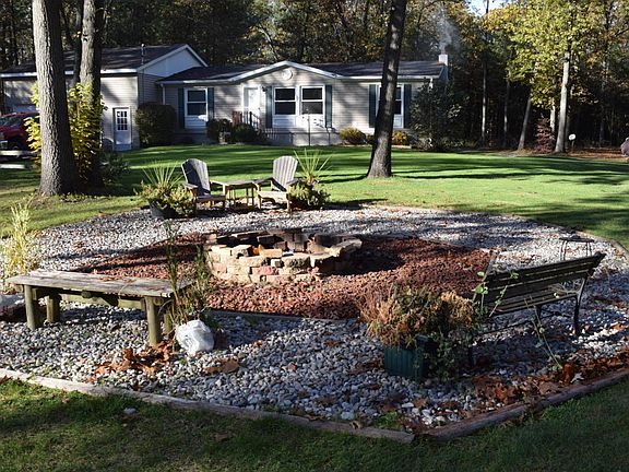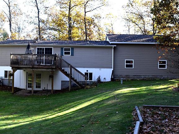 Tucked away in a nicely wooded position with very limited future growth in the immediate properties. This home is in nice condition with a newer roof, a walkout basement with French Doors and add on wood system connected to the ducts throughout, for low heating costs. The basement is perfect for the entertainment room or family room. The garage is attached and has a high ceiling for auto lift (current one does not stay). Great for the mechanic. The home includes a master bath that can be privateor open up to the remainder of the home. Enjoy the privacy from your deck and let nature in. This manufactured home was moved from a park to this property and does require portfolio financing.