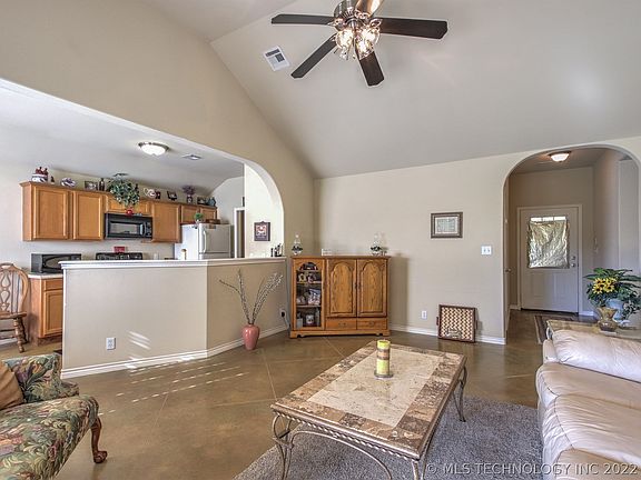 The Vaulted Ceilings Welcome You as You Enter the Large Living Room! The Intricate, Decorative Stamped Floors Flow Throughout-Connecting the OPEN Kitchen, Dining, & Living! The Master Suite is HUGE and the Ensuite Bath with His&Hers Closets! Huge Yard!