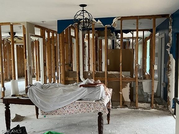 This home in the highly sought after neighborhood of The Woodlands is being sold as is due to flooding from hurricane Ian. The neighborhood has a community boat ramp that allows for access to the Gulf of Mexico. This home boast 3 bedrooms with a den and 2 bathrooms. This is a great opportunity for those interested in remodeling a home. The roof was just replaced in 2019.