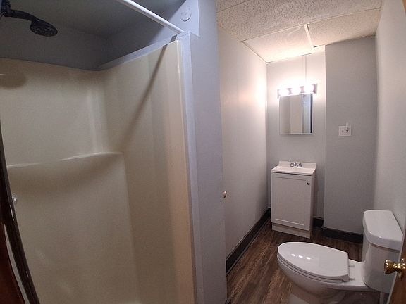 This apartment features spacious rooms that allow for flexible furniture placement and daily use. Plank flooring runs throughout the unit, and a built-in window A/C unit provides added comfort. The layout emphasizes usable living space with a straightforward, functional flow.