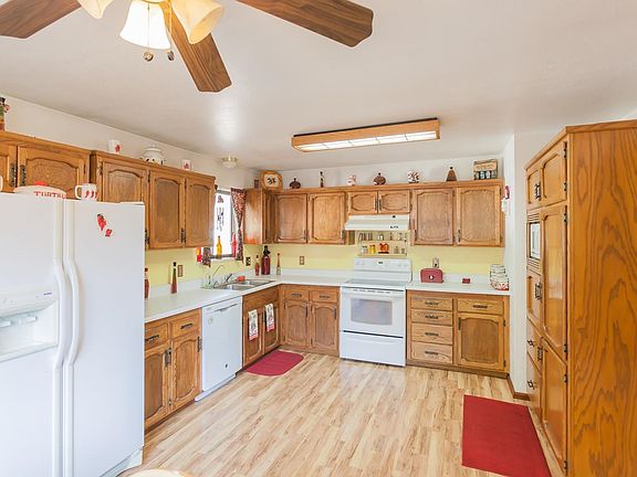 No need to go out when you have a home like this to hang out and relax! Grassy front yard features horse shoes & side yard is private hideaway! The back yard is a full BBQ retreat with big cement pad, covered patio Full-bar, firepit, room for tables and more!!! Home has a wonderful open layout with a large gas fireplace in the living room, open to the dining room and spacious kitchen. 4 bedrooms make enough room for everyone! Recent updates are tile in bathrooms, laminate in kitchen, water softener, hot water heater, updated paint, fence, & 2 sheds. 2 car attached garage is set up as Bronco Fan Cave and party hang-out too! Don't forget the large RV parking here too. You will love this home, call for your private showing.