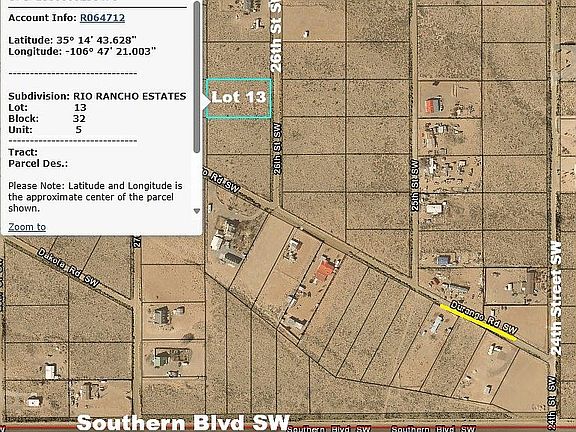 Se Habla Espanol ELECTRIC POWER ON LOT - One Acre! - Manufactured Homes welcome and permitted. Build your dream home here. Close off Southern close to all services, restaurants, and shopping. Up to 5 Acres Available! - ELECTRIC POWER POLES ON LOTS 10 & 12 & 13!! - JUST OFF SOUTHERN ON 26th St SW - SEE MAP - 1 Acre In an area of manufactured homes and regular homes - - GPS is Latitude: 35 14' 43.628” Longitude -106 47’ 21.003”