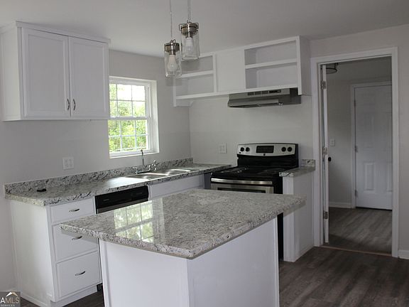 Charming 3 bedroom, 2 bath home featuring tile bathrooms, barn doors, granite kitchen island, new cabinets, laundry room, den/dining room combo, storage shed, and large front porch. School system based on Zillow information.