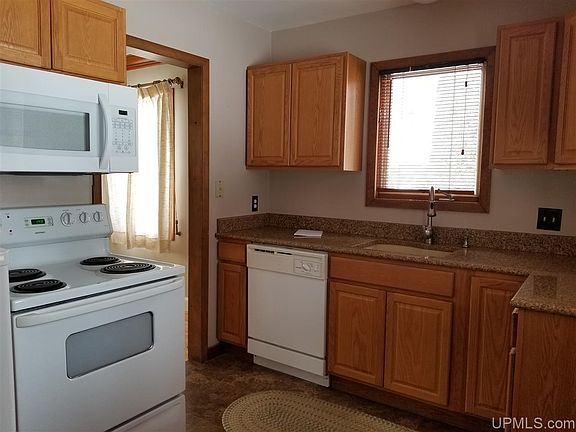 Just bring your groceries! This home in Hurley has been renovated and recently refinished hardwood floors and repainted the main level. Home has metal roof, newer siding, new kitchen cabinets and countertop. Newer furnace with central air, and add on wood stove. 200amp electrical service. Newer bathroom on main floor with jetted tub, travertine tile and shower with six shower heads that is 5ftx3ft. Main floor has kitchen, dining room, good size living room, sitting area, and full bath. Upstairs has 2 good size bedrooms with full bath. Beautifully landscaped, fenced in back yard. 3 car garage with new door openers. Give us a call to view this lovely home!