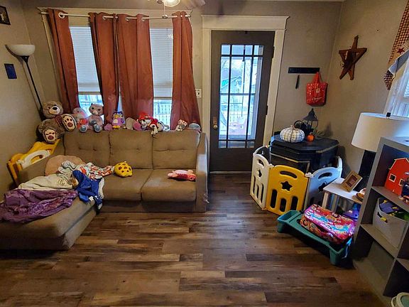 This is a beautiful 6 bedroom, 2 full bath, 2 half bath duplex bursting with personality. It offers off street parking via a large carport behind the home and fenced in yard areas perfect for pets and children. Each of the bedrooms are of a great size with plenty of storage options.
