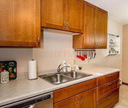 Affordable, 2nd floor condo is just 8 steps up in security building. It's close to Island Park and downtown Fargo. It has newer windows, single garage and deck. It's been recently updated with new flooring, new bath fixtures and new, open kitchen featuring mission-style oak cabinets, stainless appliances, new counters. $180/month condo fee covers heat, water, garbage, lawn, snow, building insurance & maintenance. Large storage unit right next door to condo. Don't miss it!